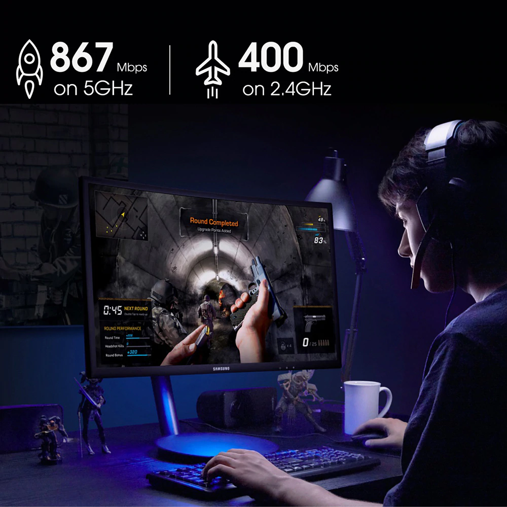 Taux de transmission: 1300Mbps (11N:400Mbps, 11AC:867Mbps)