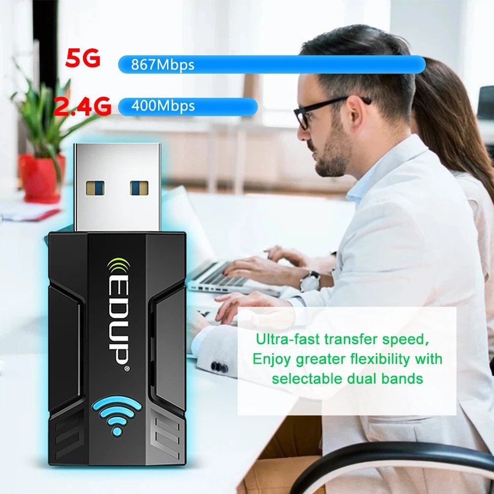 Mini USB WiFi Adapter 1300Mbps EDUP carte réseau récepteur wifi 2,4 GHz/5 GHz